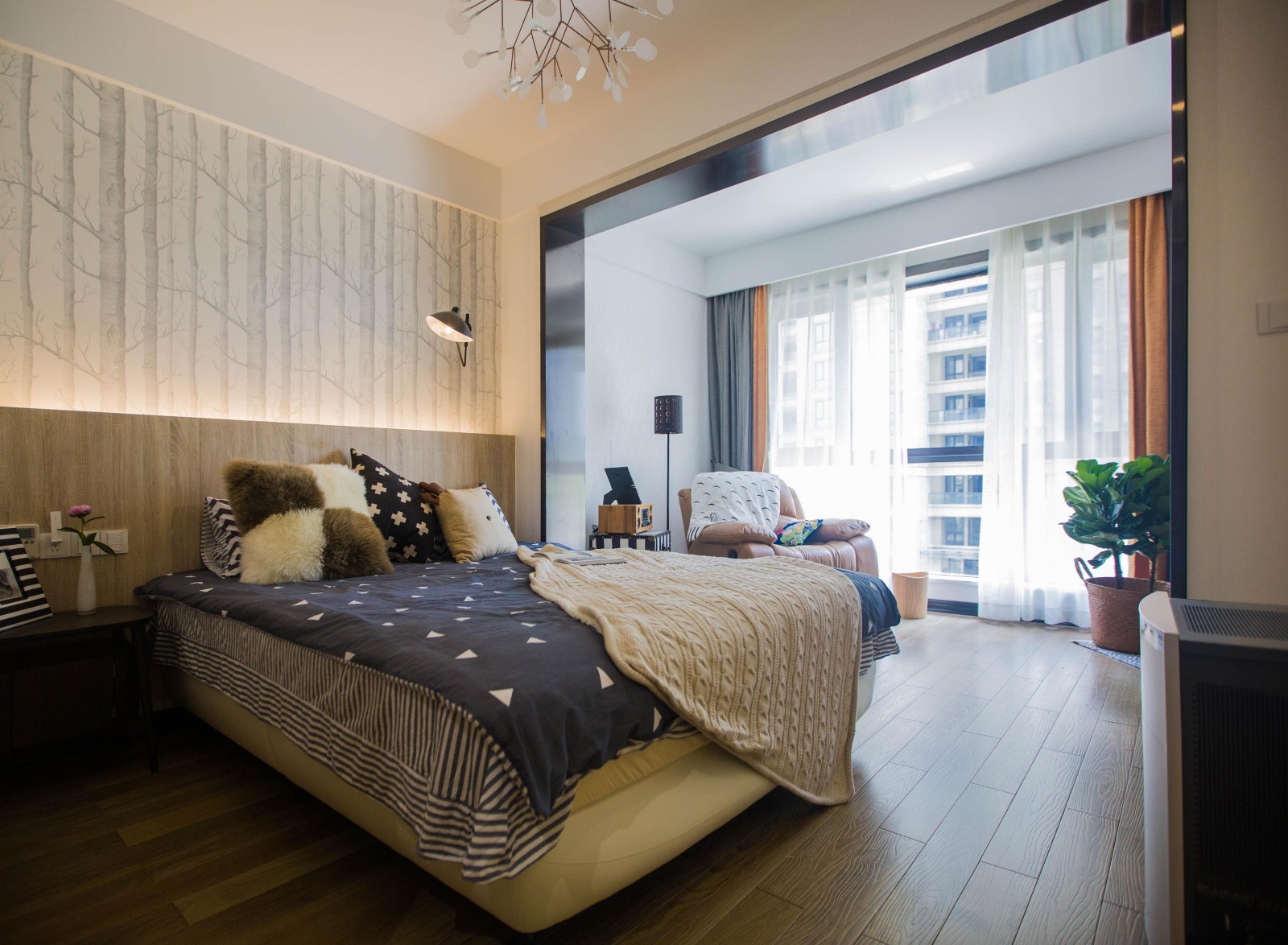 臥室擁有著真實(shí)和自由自在的狀態(tài),隨意擺放的毛毯,自己喜愛(ài)的床品,它需要優(yōu)雅的曲線(xiàn)和溫情的想象,把千絲萬(wàn)縷的情懷收納在臥室里,讓夢(mèng)境更加絢爛。