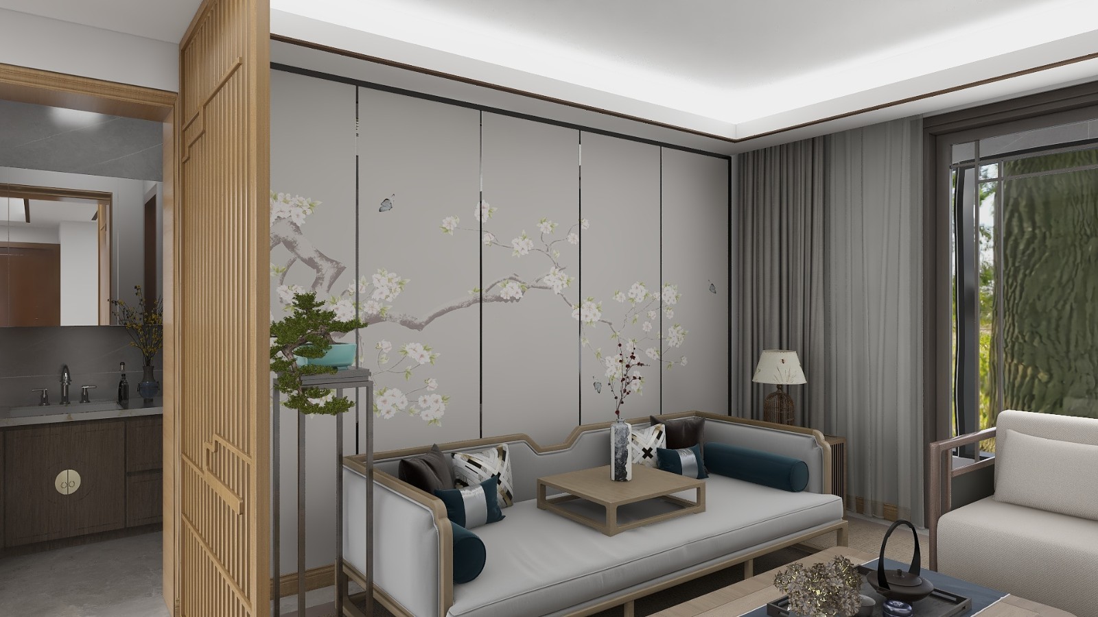 新中意境的背景墻,在富有禪意的同時(shí)不失年輕的活力