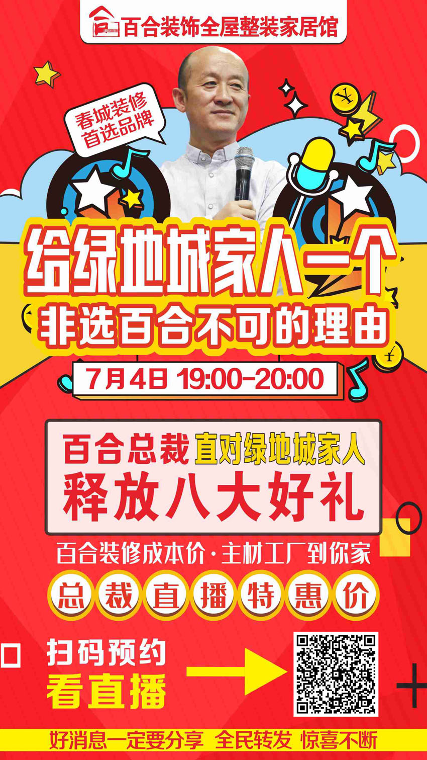 7月4號(hào)百合裝飾 總裁直播 綠地城小區(qū)專場福利